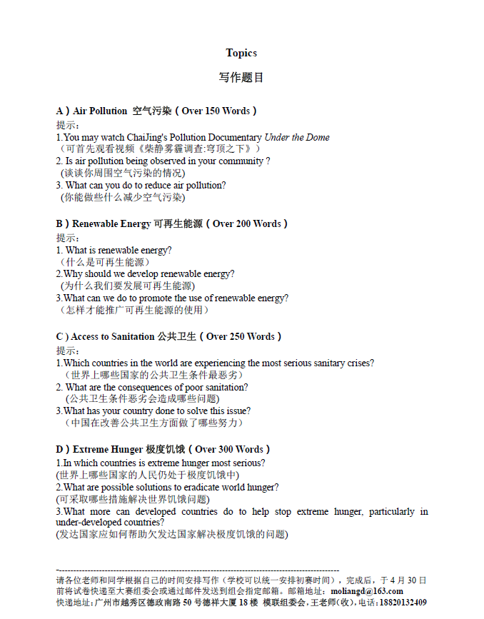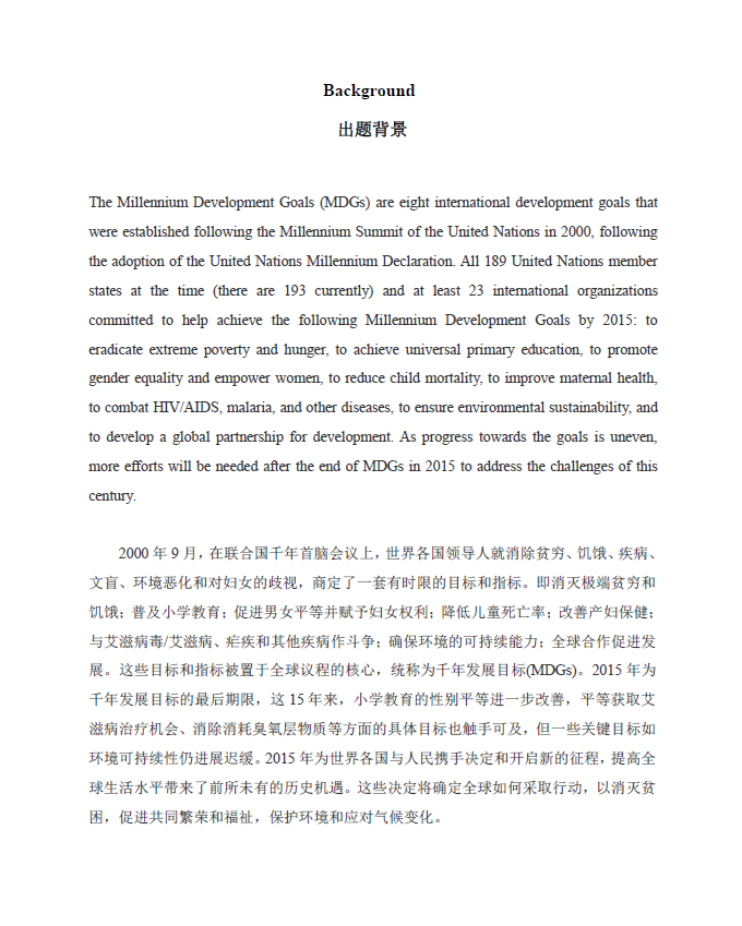 2015国际中学生模拟联合国大会暨广东中学生模拟联合国大会【初赛试题】